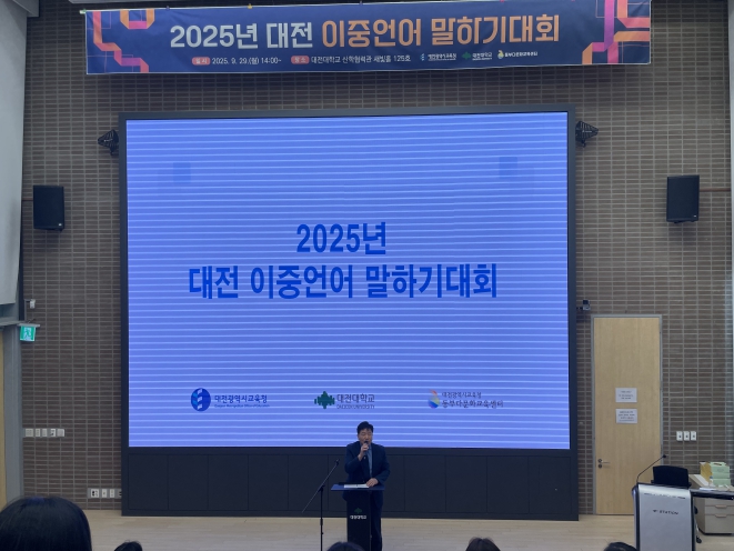 [뉴스다컴] 대전시교육청은 9월 29일 대전대학교 산학협력관에서 대전지역 초·중·고등학생 34명이 참여하는 ‘2025년 대전이중언어말하기대회’를 성황리에 개최했다고 밝혔다.