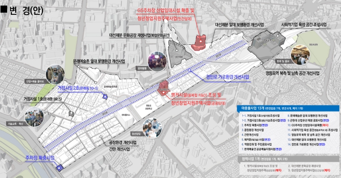 이번 도시재생활성화계획 변경(안)은 2018년부터 추진해 왔던 영등포 경인로 일대 도시재생사업이 금년 12월 마무리됨에 따라 사업 추진 과정에서 정책 및 여건 변화 등으로 인해 변경된 내용을 반영했다.