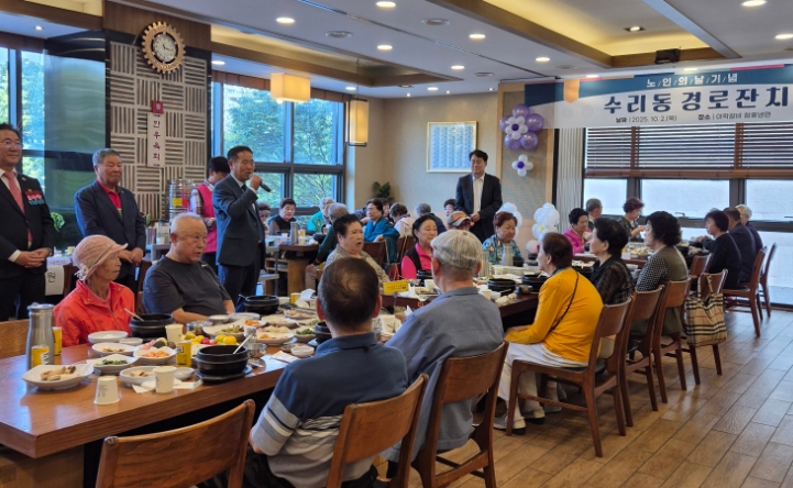 [뉴스다컴] 군포시 수리동 주민자치회(회장 고진해)는 제29회 노인의 날을 맞아 지난 10월 2일 수리동 어르신들을 대상으로 경로잔치를 개최했다. 이번 행사는 하은호 군포시장, 이학영 국회부의장 등 여러 내빈과 수리동 직능단체장들이 어르신 100여 명과 뜻깊은 자리를 함께했다.
